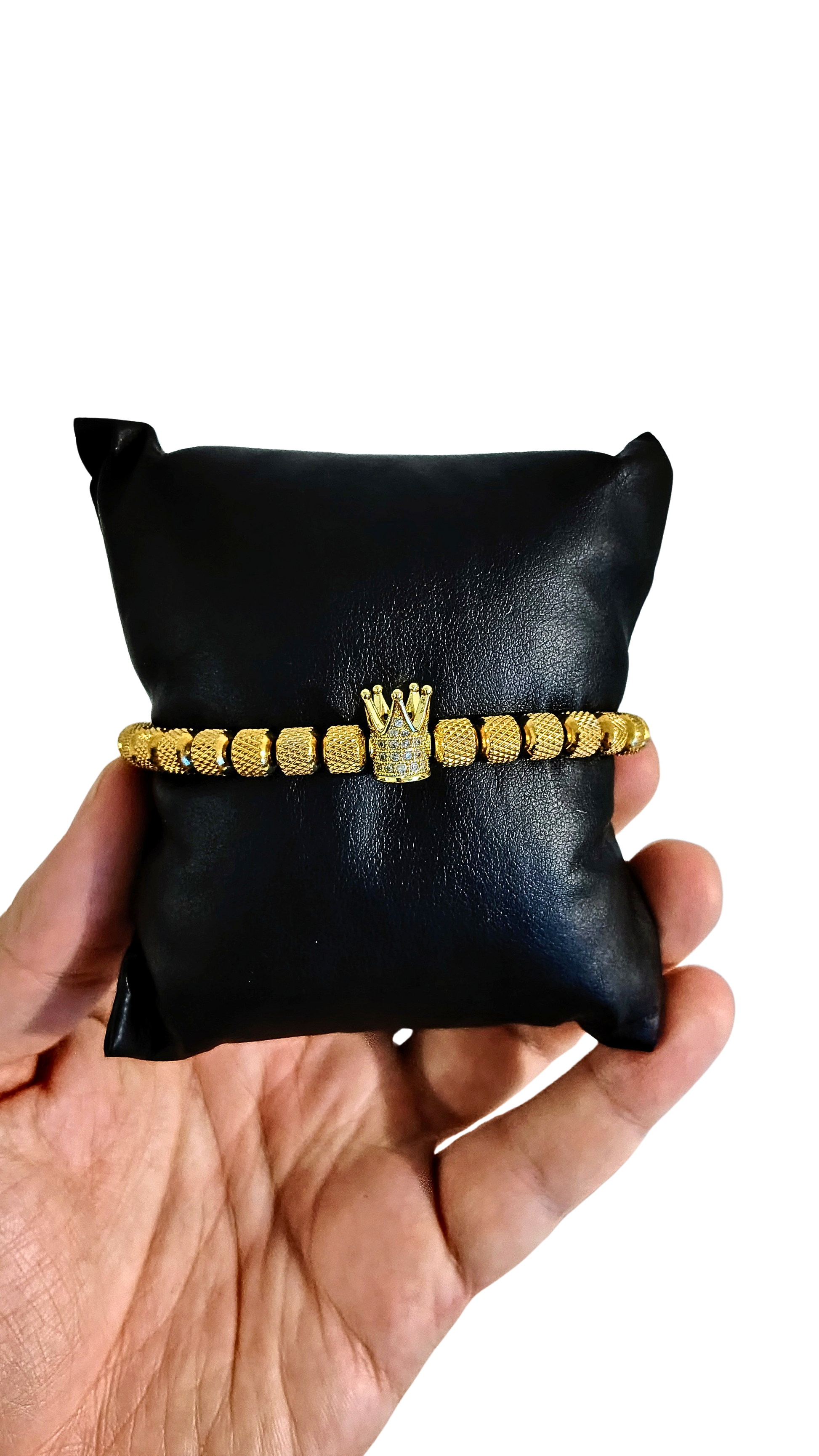 Pulsera Diseño 05 – Oro Laminado 18K con Dije de Corona Real