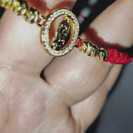 Pulsera tejida con hilo resistente y dije de la Virgen en oro laminado 18K. Un accesorio elegante y protector que combina fe, brillo y estilo.